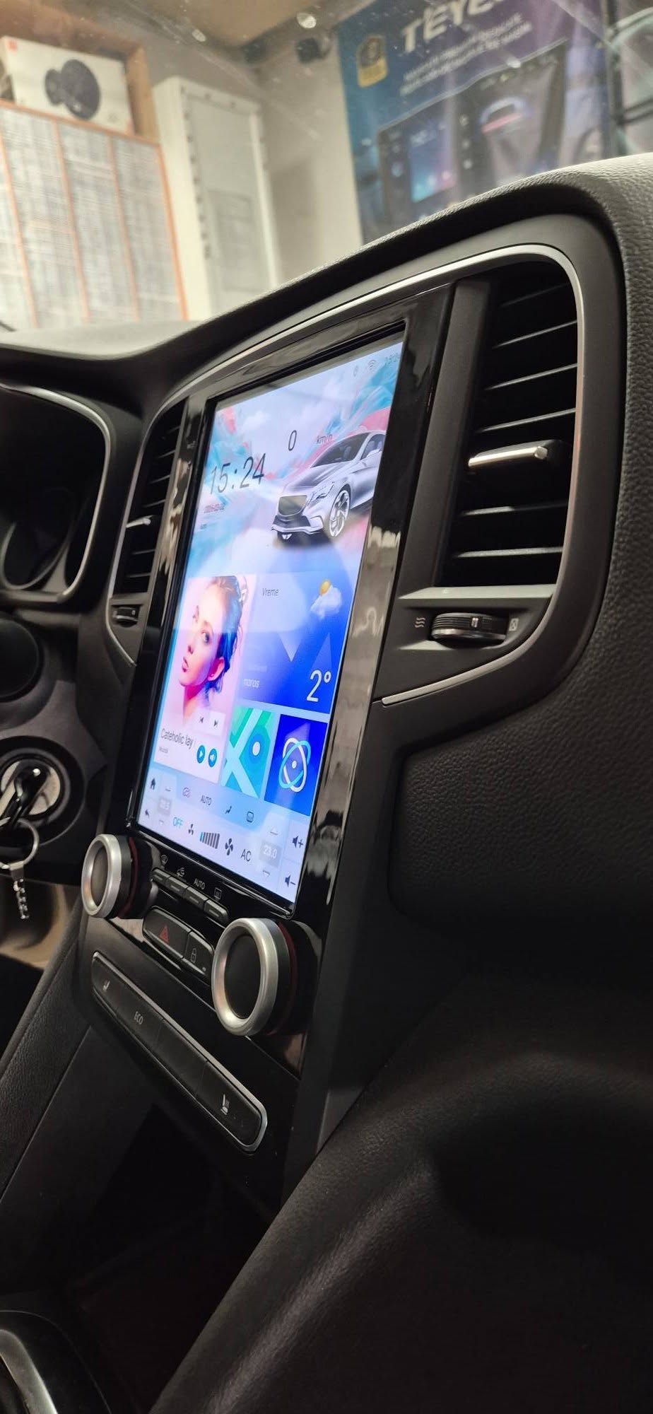 Un Renault Megane 4, echipat din fabrică cu o configurație multimedia medie, a primit un upgrade dedicat prin instalarea unui sistem Tesla Style, integrat perfect în bord.