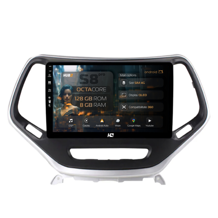 Navigatie HUB64 Jeep Grand Cherokee (2015+), 8GB RAM, Android, Octacore, Slot Sim 4G, DSP, GPS, Wi-FI, Carplay, Android Auto, USB, Bluetooth, Waze, Touchscreen, 10.1 Inch