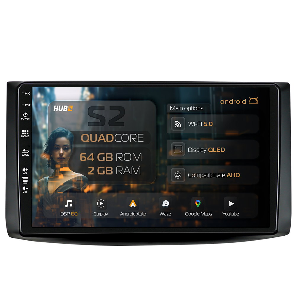 Seria S2 de la HUB64® este alimentată de un procesor Quadcore puternic, asigurând o operare fluidă și rapidă a sistemului, indiferent de numărul de aplicații utilizate simultan. Sistemul de operare Android 13 oferă acces la o gamă largă de aplicații din Google Play, inclusiv Google Maps, Waze și Spotify, transformând unitatea într-un adevărat centru multimedia.