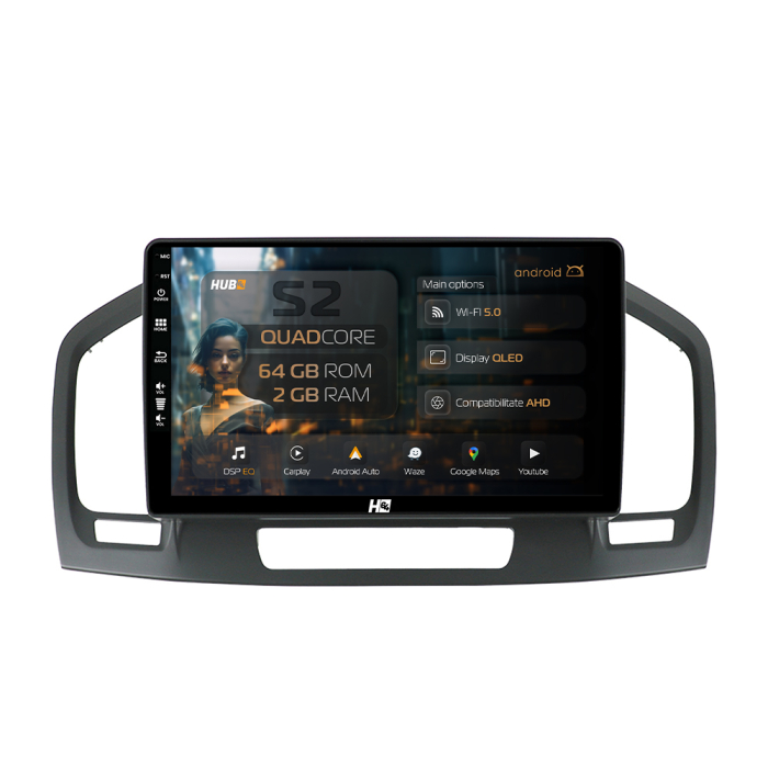 Navigatie HUB64 Opel Insignia (2008-2013), 2GB RAM, Android, GPS, Wi-FI, Carplay, Android Auto, USB, Bluetooth, Radio, Waze, Touchscreen, 9 inch