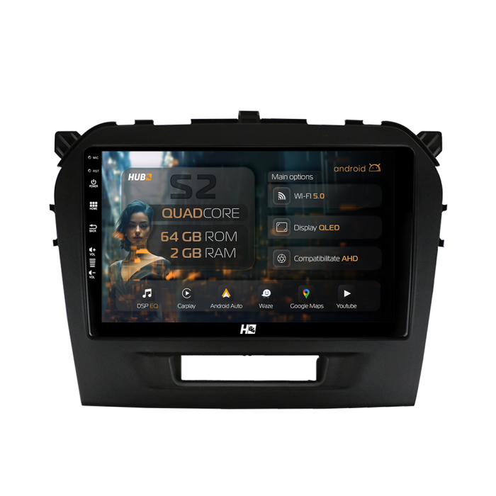 Navigatie HUB64 Suzuki Vitara (2015+), 2GB RAM, Android, GPS, Wi-FI, Carplay, Android Auto, USB, Bluetooth, Radio, Waze, Touchscreen, 9 inch