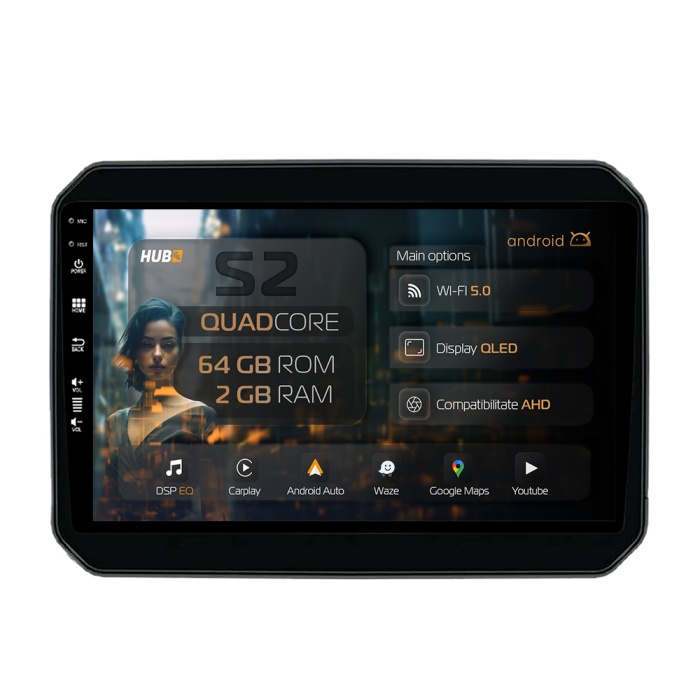Navigatie HUB64 Suzuki Ignis (2016+), 2GB RAM, Android, GPS, Wi-FI, Carplay, Android Auto, USB, Bluetooth, Radio, Waze, Touchscreen, 9 inch