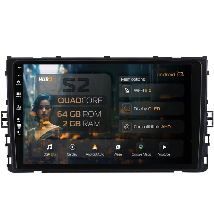 Navigatie HUB64 Volkswagen T-Cross (2018+), 2GB RAM, Android, GPS, Wi-FI, Carplay, Android Auto, USB, Bluetooth, Radio, Waze, Touchscreen, 9 inch
